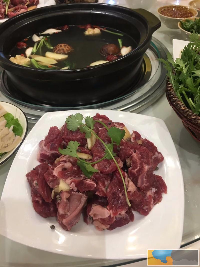 养生锅底与新鲜的大块牛肉相互结合